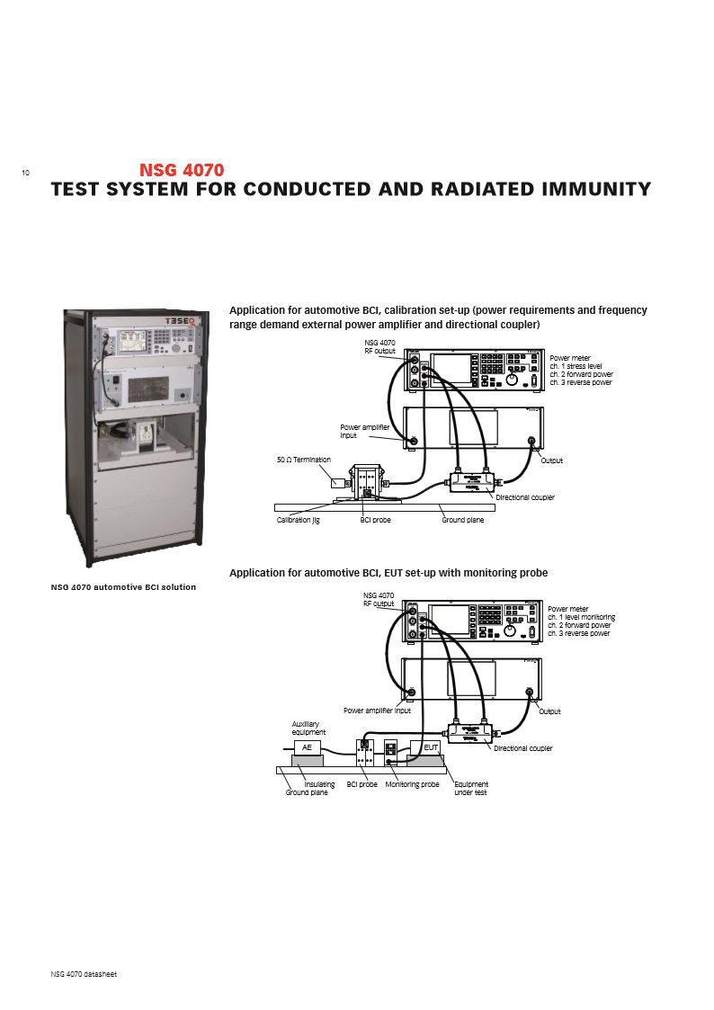 符合汽車電子零件測試 IEC 62134-4 能量注入測試, 車用電子測試 ISO 11452-4 BCI 大電流注入測試,及 IEC 61000-4-3, IEC 61000-4-6 , IEC 61000-4-20 , IEC 61000-4-21 等EMC測試標準